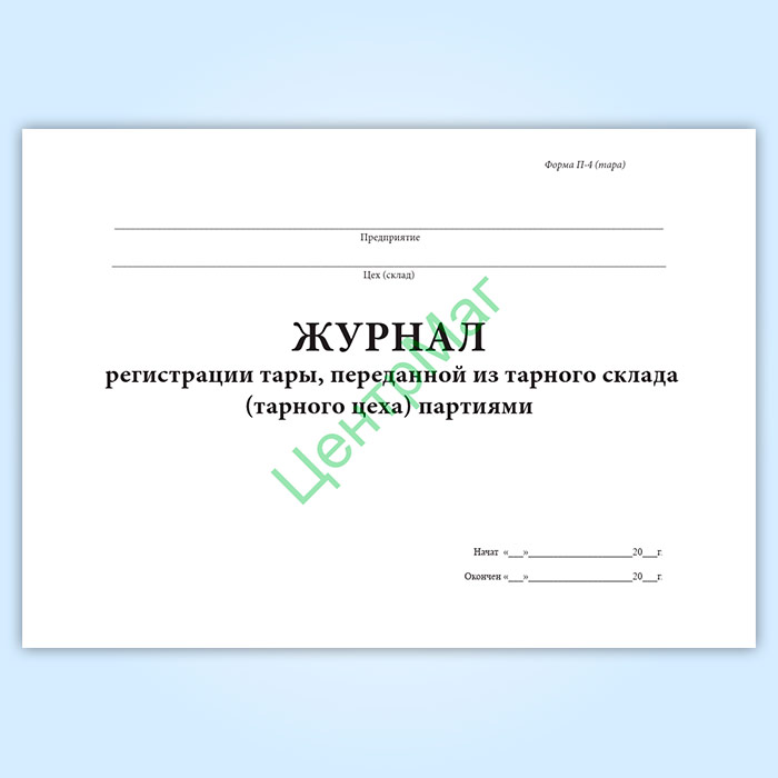 Журнал регистрации тары, переданной из тарного склада (тарного цеха) партиями (форма № П-4 тара) в Тюмени купить