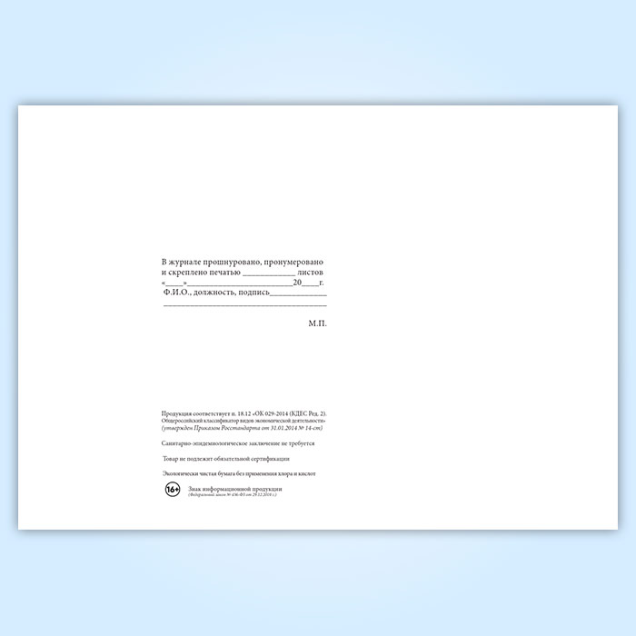 Вы получаете печатную продукцию прошнурованной и c местом для вашей печати в соответствии с действующими нормативными документами: