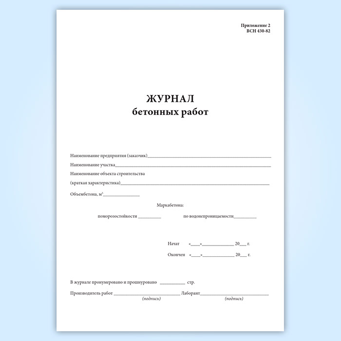 Журнал бетонных работ (ВСН 430-82) в Тюмени купить