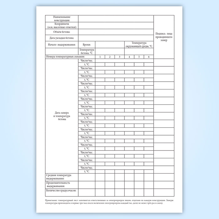 Журнал регистрации температуры бетона в монолитных конструкциях в Тюмени купить