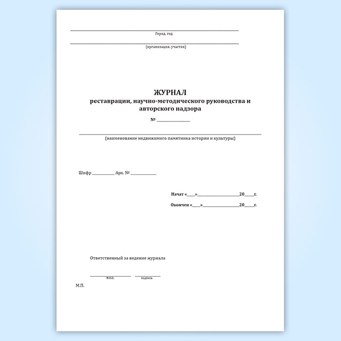Журнал реставрации, научно-методического руководства и авторского надзора в Тюмени купить