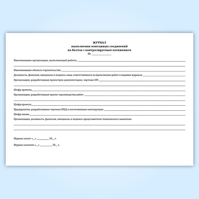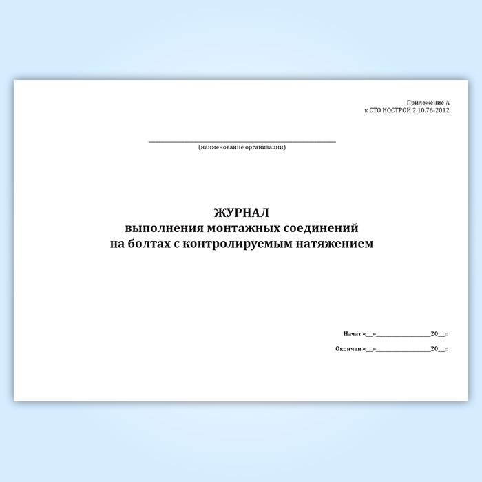 Журнал выполнения монтажных соединений на болтах с контролируемым натяжением (СТО НОСТРОЙ 2.10.76-2012) в Тюмени купить