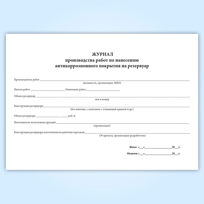 Журнал производства работ по нанесению антикоррозионного покрытия на резервуар в Тюмени купить