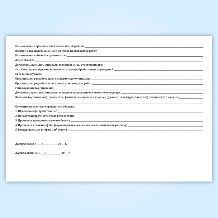 Журнал производства работ по возведению монолитных сталефибробетонных ограждений в Тюмени купить