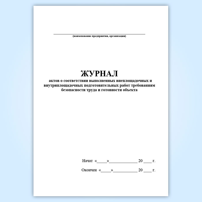 Журнал актов о соответствии выполненных внеплощадочных и внутриплощадочных подготовительных работ требованиям безопасности труда и готовности объекта в Тюмени купить