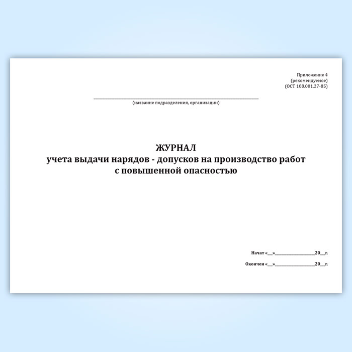Журнал учета выдачи нарядов-допусков на производство работ с повышенной опасностью в Тюмени купить