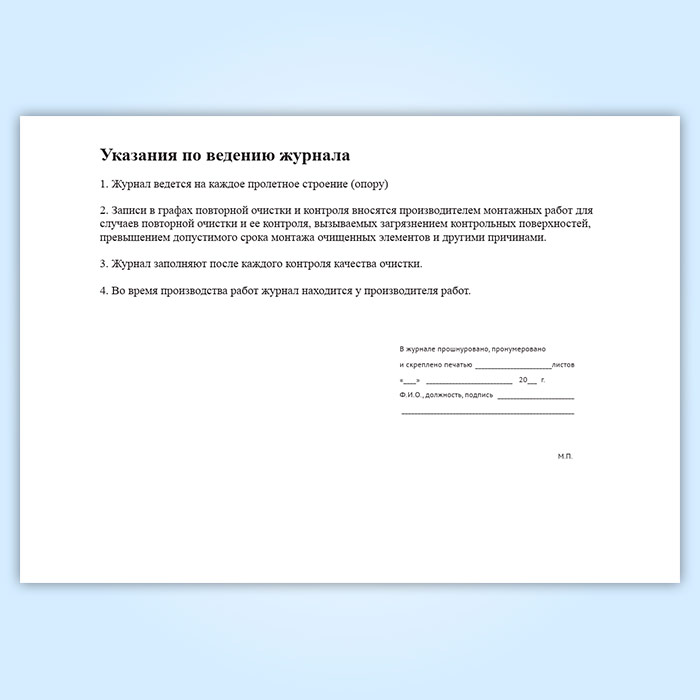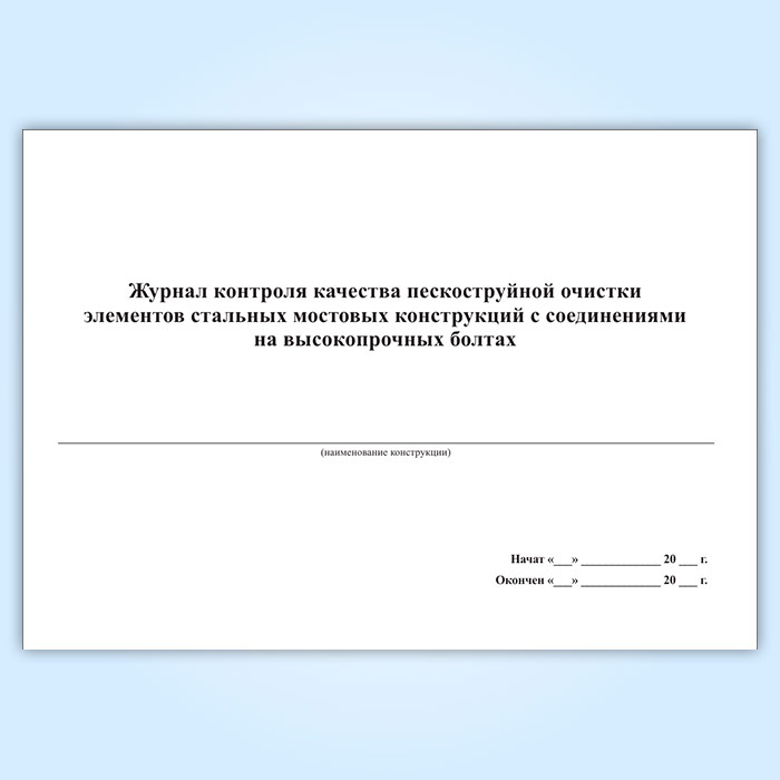 Журнал контроля качества пескоструйной очистки элементов стальных мостовых конструкций с соединениями на высокопрочных болтах в Тюмени купить