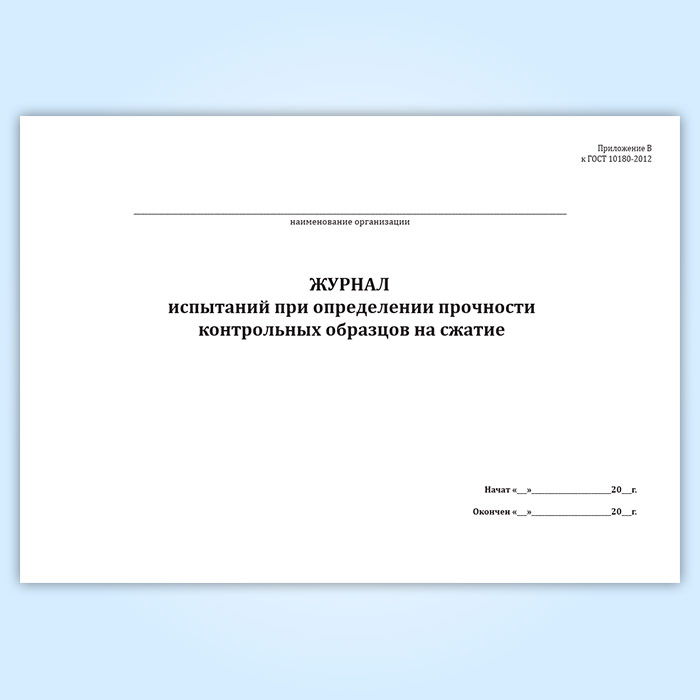 Журнал испытаний при определении прочности контрольных образцов на сжатие в Тюмени купить