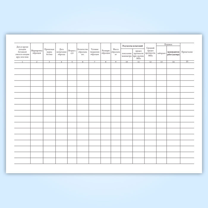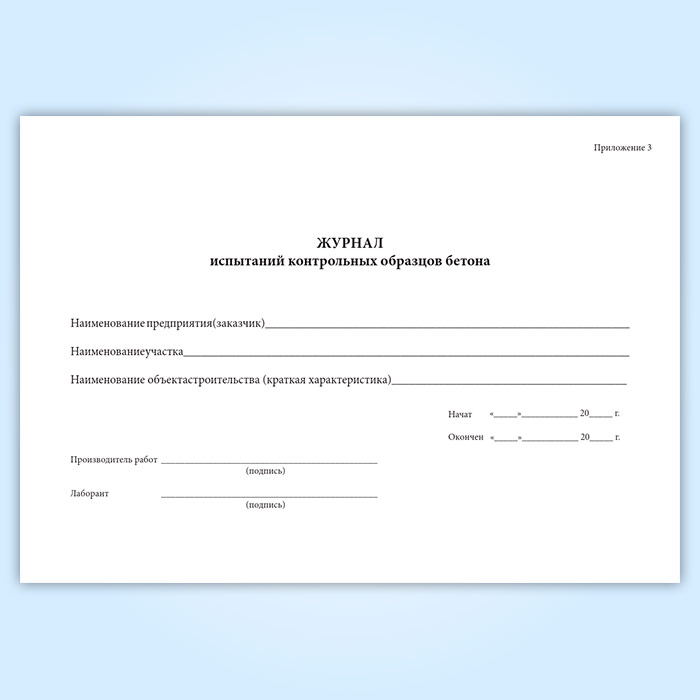 Журнал испытаний контрольных образцов бетона (ВСН 430-82) в Тюмени купить