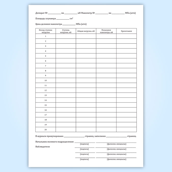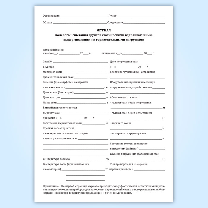 Журнал полевого испытания грунтов статическими вдавливающими, выдергивающими и горизонтальными нагрузками в Тюмени купить