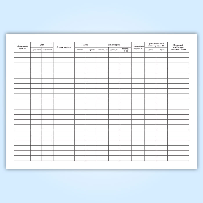 Журнал результатов по определению прочности бетона эталонным молотком Кашкарова в Тюмени купить