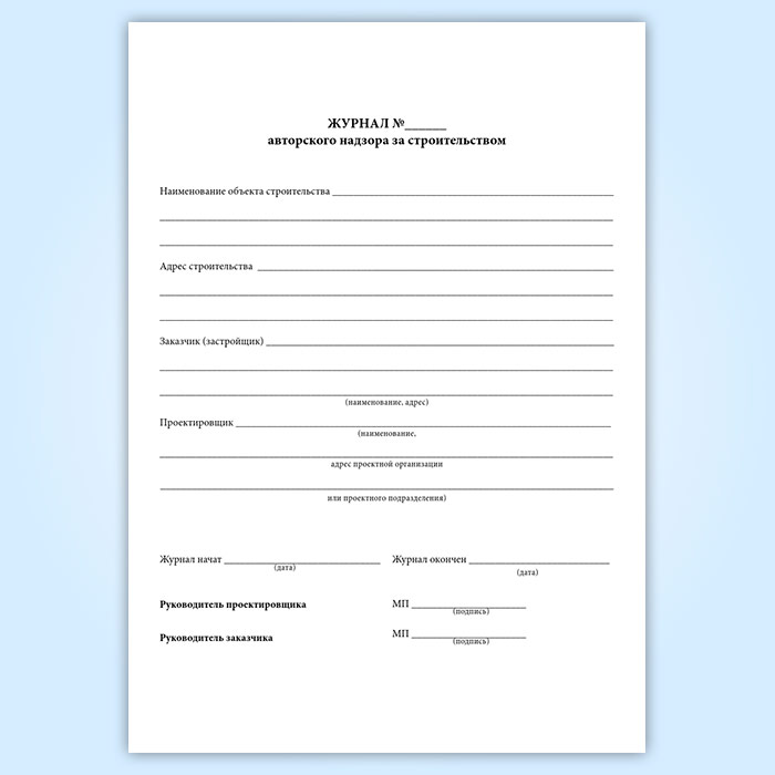 Журнал авторского надзора за строительством (СП 246.1325800.2016) в Тюмени купить