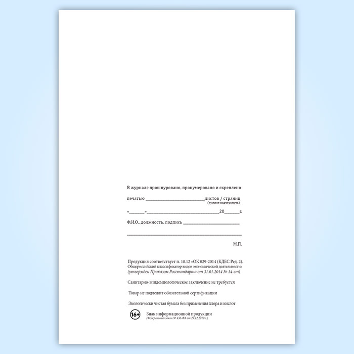 Вы получаете печатную продукцию прошнурованной и c местом для вашей печати в соответствии с действующими нормативными документами: