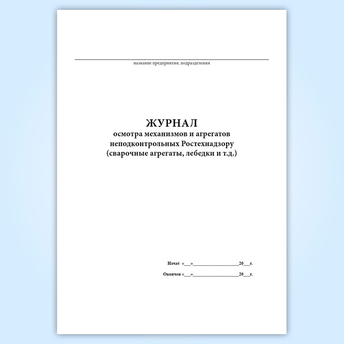 Журнал осмотра механизмов и агрегатов неподконтрольных Ростехнадзору в Тюмени купить