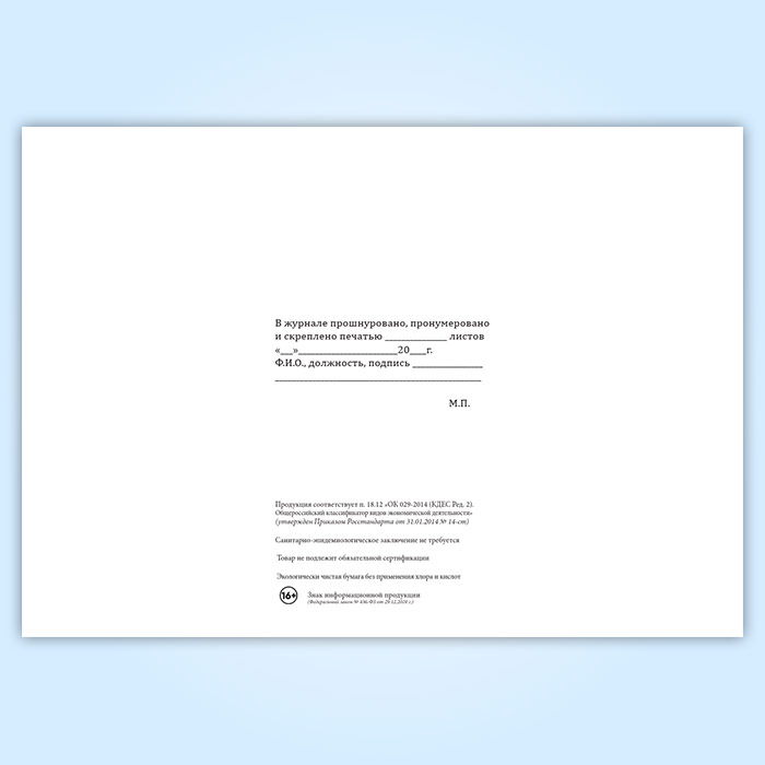 Вы получаете печатную продукцию прошнурованной и c местом для вашей печати в соответствии с действующими нормативными документами: