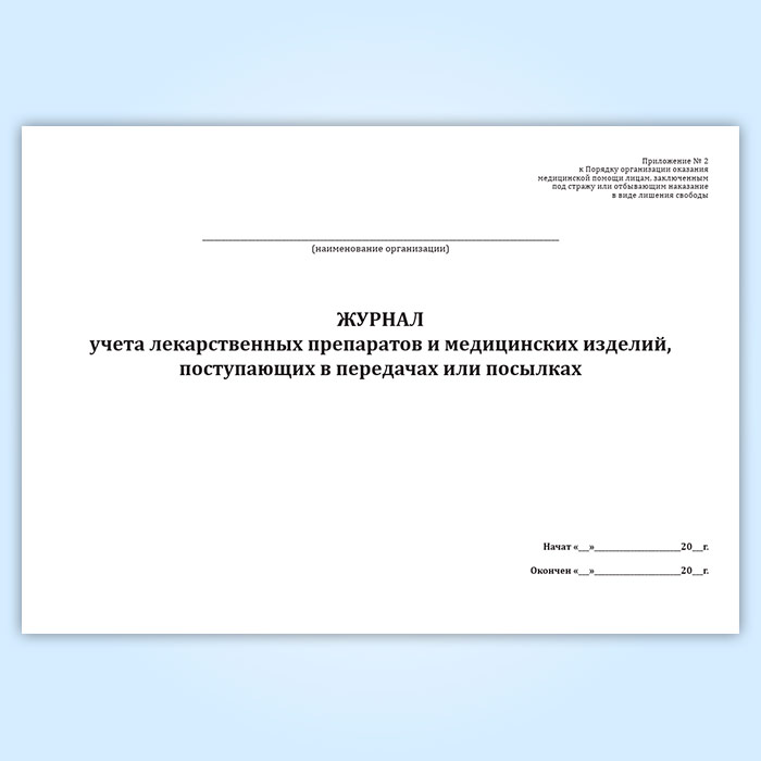 Журнал учета лекарственных препаратов и медицинских изделий, поступающих в передачах или посылках в Тюмени купить
