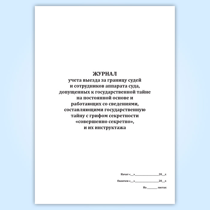Журнал учета выезда за границу судей и сотрудников аппарата суда, допущенных к государственной тайне на постоянной основе и работающих со сведениями, составляющими государственную тайну с грифом секретности «совершенно секретно», и их инструктажа в Тюмени купить