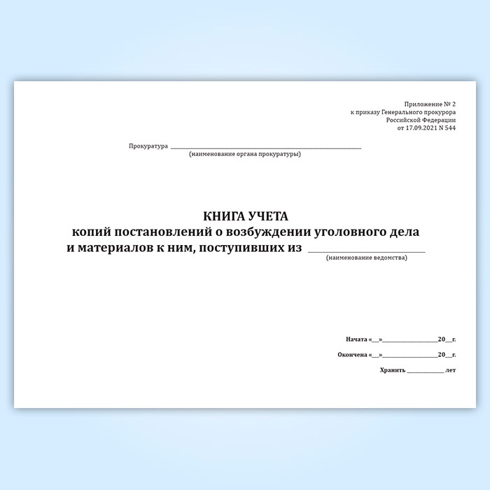 Книга учета копий постановлений о возбуждении уголовного дела и материалов к ним в Тюмени купить