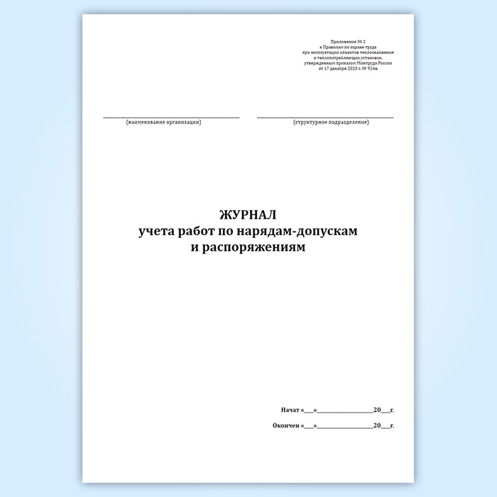 Журнал учета работ по нарядам-допускам и распоряжениям (для объектов теплоснабжения и теплопотребляющих установок) в Тюмени купить