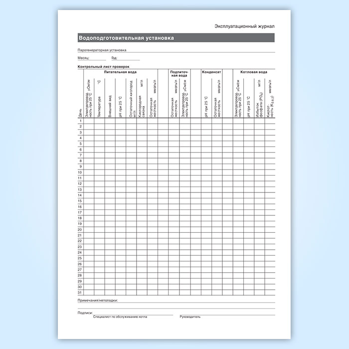 Сменный журнал водоподготовительной установки с Н-катионитными фильтрами в Тюмени купить