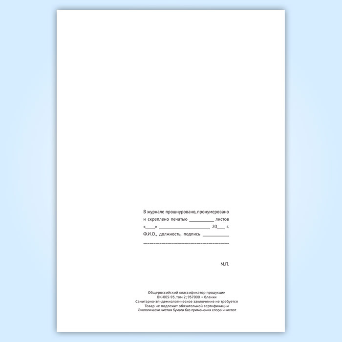 Вы получаете печатную продукцию прошнурованной и c местом для вашей печати в соответствии с действующими нормативными документами: