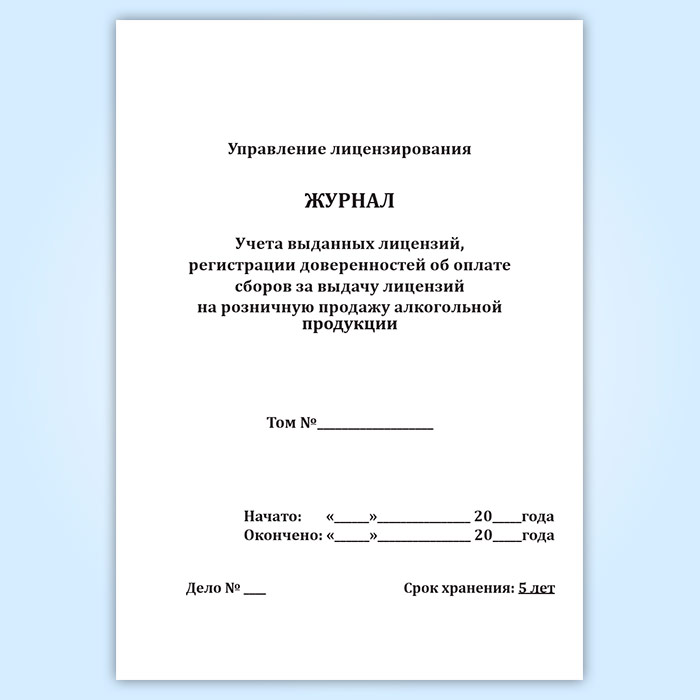 Журнал учета выданных лицензий, регистрации доверенностей об оплате сборов за выдачу лицензий на розничную продажу алкогольной продукции в Тюмени купить