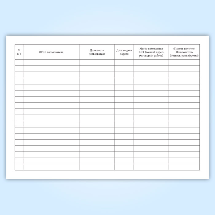Журнал выдачи паролей для работы с контрольно-кассовой техникой (ККТ) в Тюмени купить