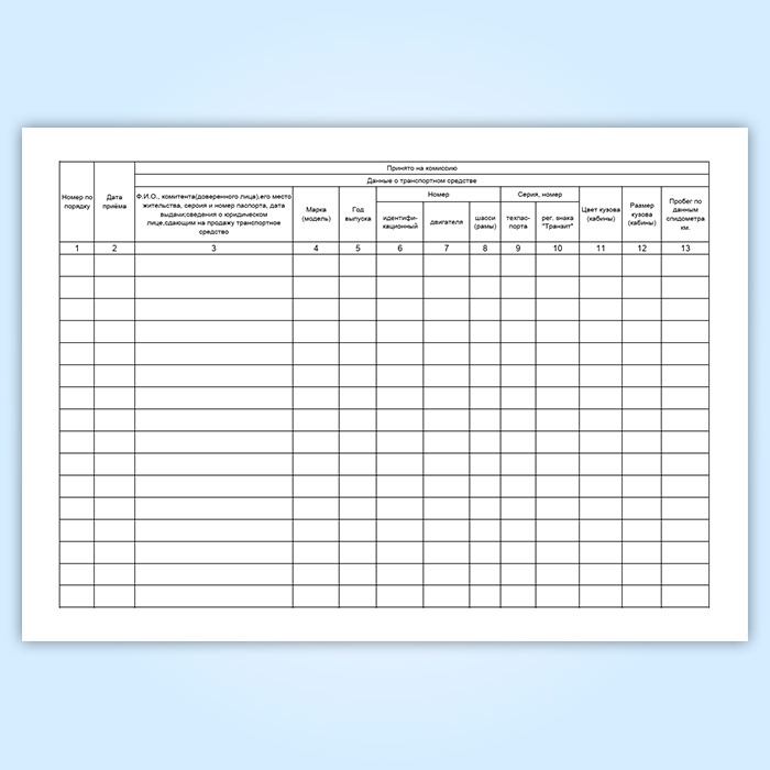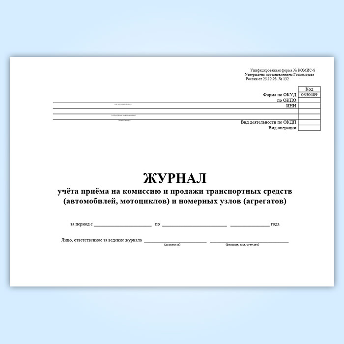 Журнал учета приема на комиссию и продажи транспортных средств (автомобилей, мотоциклов) и номерных узлов (агрегатов) (форма № КОМИС-8) в Тюмени купить