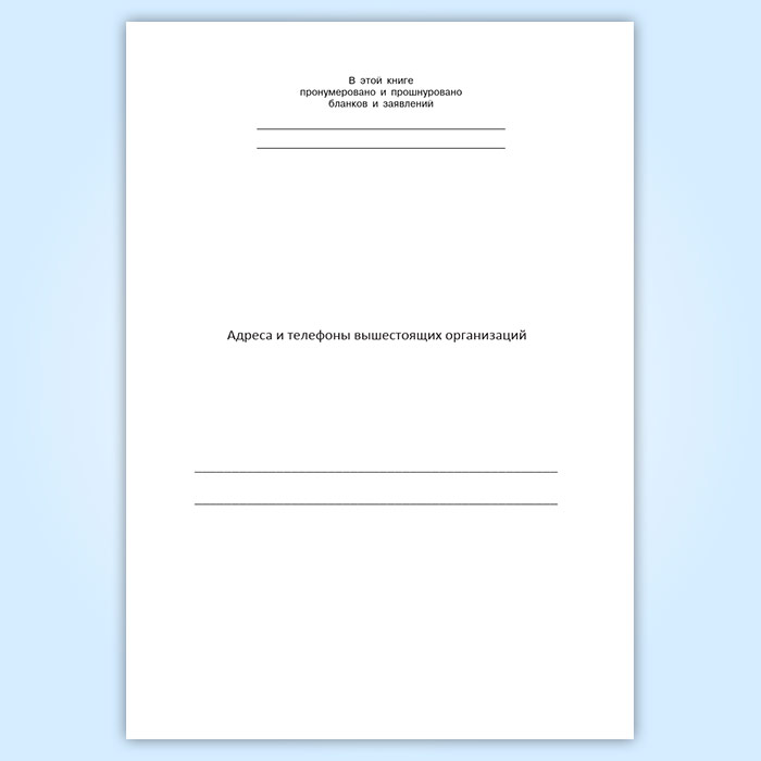 Вы получаете печатную продукцию прошнурованной и c местом для вашей печати в соответствии с действующими нормативными документами: