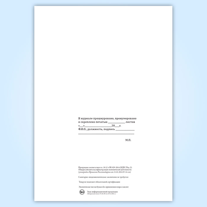 Вы получаете печатную продукцию прошнурованной и c местом для вашей печати в соответствии с действующими нормативными документами:
