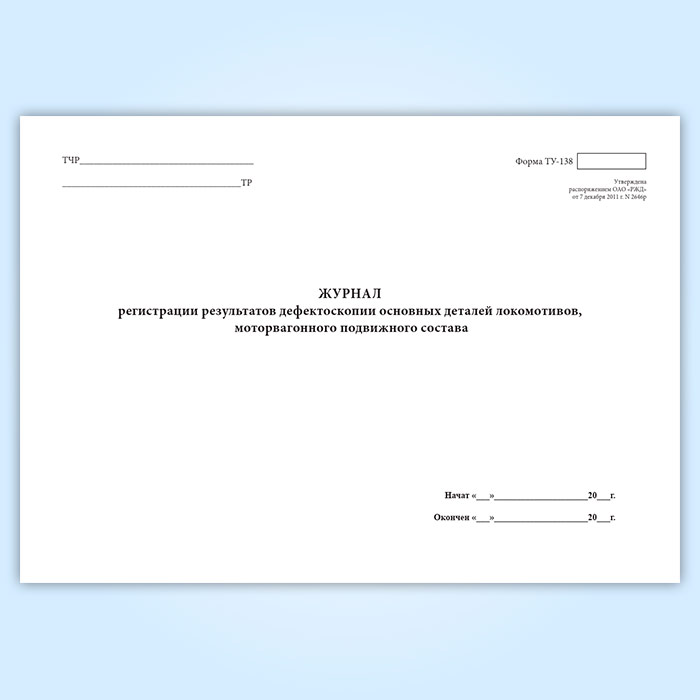 Журнал регистрации результатов дефектоскопии основных деталей локомотивов, моторвагонного подвижного состава (форма ТУ-138) в Тюмени купить
