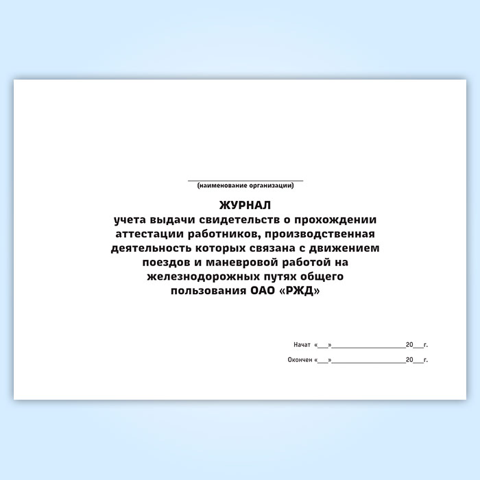 Журнал учета выдачи свидетельств о прохождении аттестации работников, производственная деятельность которых связана с движением поездов и маневровой работой на железнодорожных путях общего пользования ОАО «РЖД» в Тюмени купить