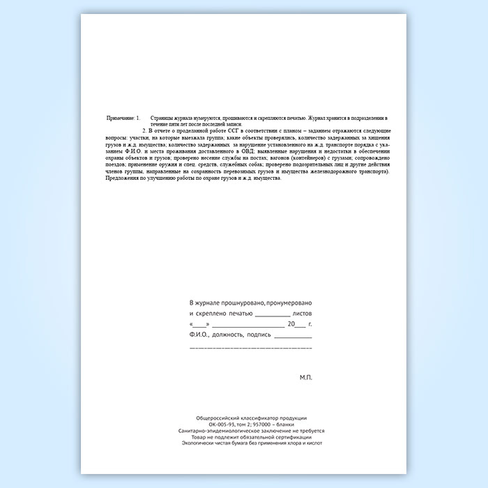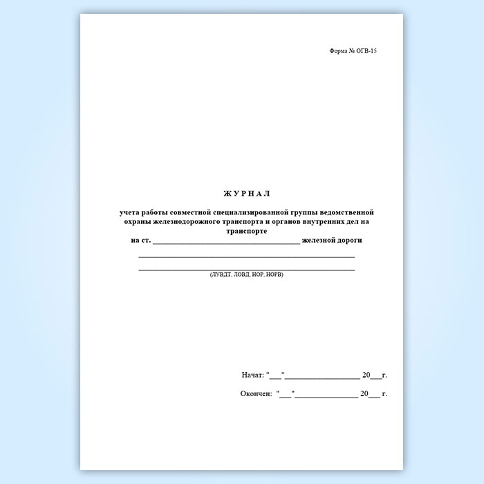 Журнал учета работы совместной специализированной группы ведомственной охраны железнодорожного транспорта и органов внутренних дел на транспорте (форма № ОГВ-15) в Тюмени купить