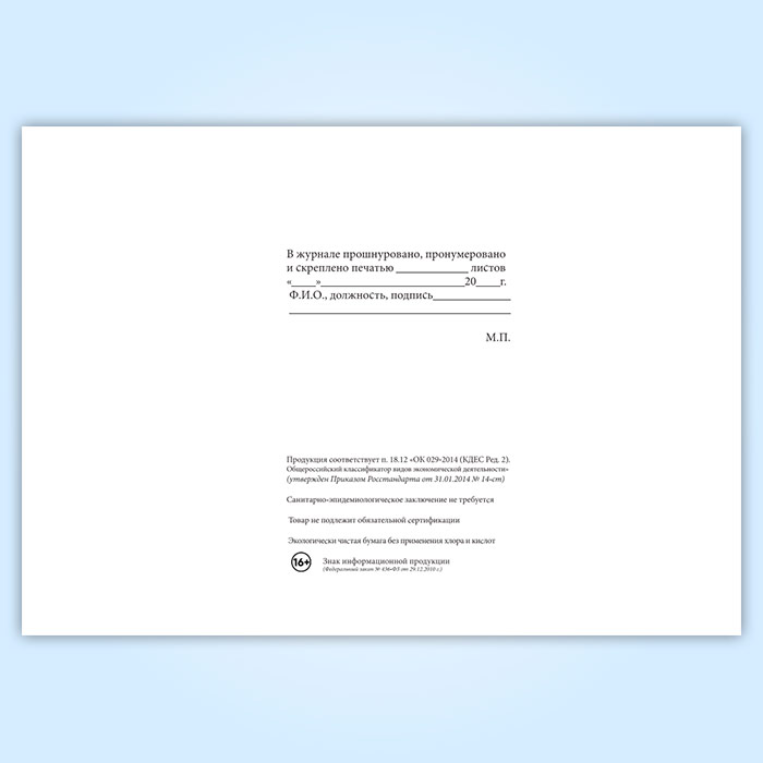 Вы получаете печатную продукцию прошнурованной и c местом для вашей печати в соответствии с действующими нормативными документами: