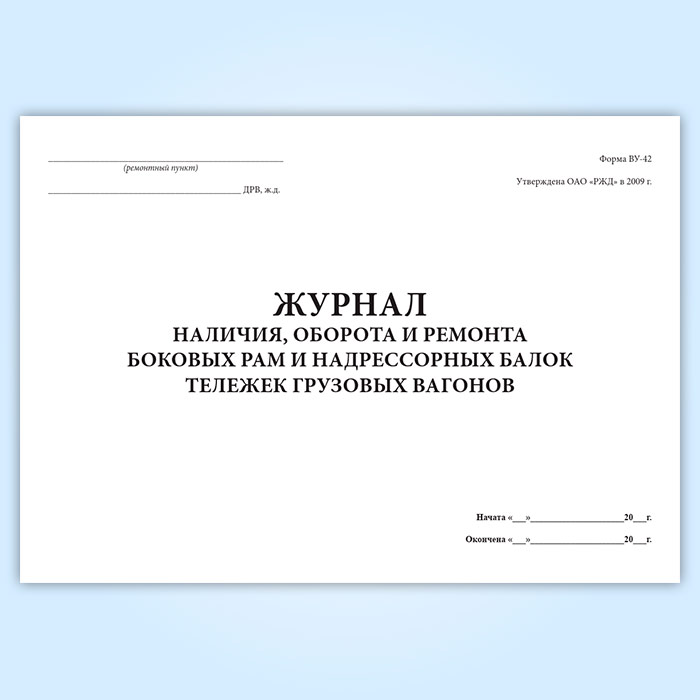 Журнал учета наличия, оборот и ремонт боковых рам и надрессорных балок тележек грузовых вагонов (форма ВУ-42) в Тюмени купить