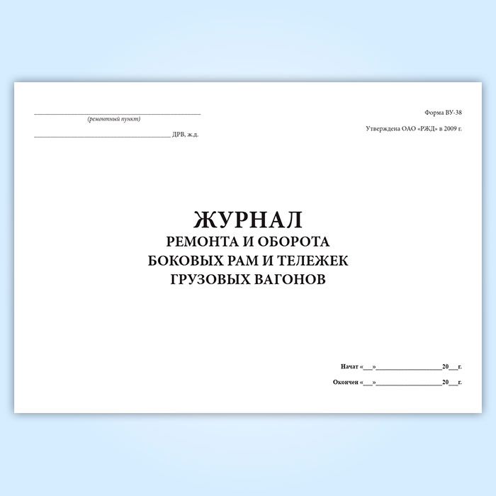 Журнал ремонта и оборота боковых рам и тележек грузовых вагонов (форма ВУ-38) в Тюмени купить