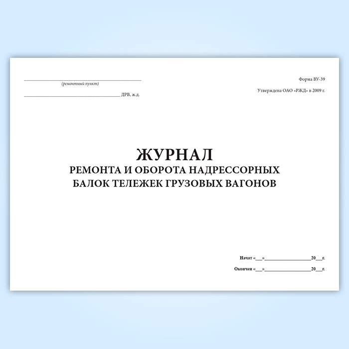 Журнал ремонта и оборота надрессорных балок тележек грузовых вагонов (форма ВУ-39) в Тюмени купить