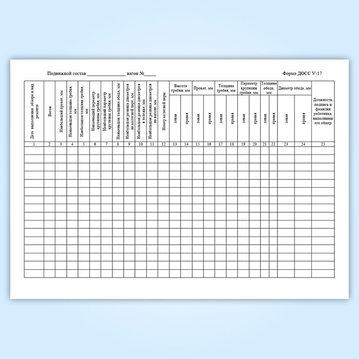 Книга состояния колесных пар скоростных/высокоскоростных электропоездов (форма ДОСС У-17) в Тюмени купить