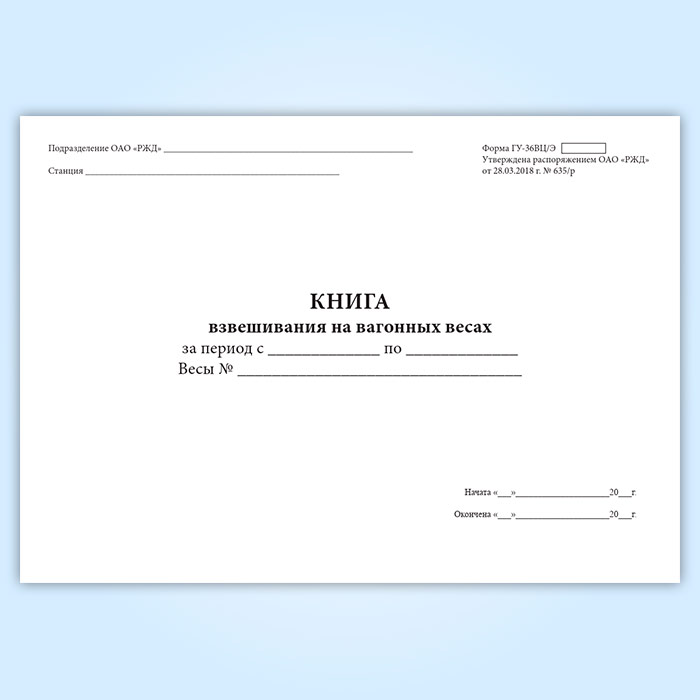 Книга взвешивания на вагонных весах (форма ГУ-36ВЦ/Э) в Тюмени купить