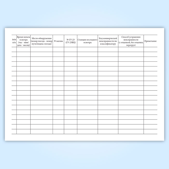 Книга регистрации коммерческих неисправностей вагонов в поездах в пунктах коммерческого осмотра (форма ГУ-98ВЦ) в Тюмени купить