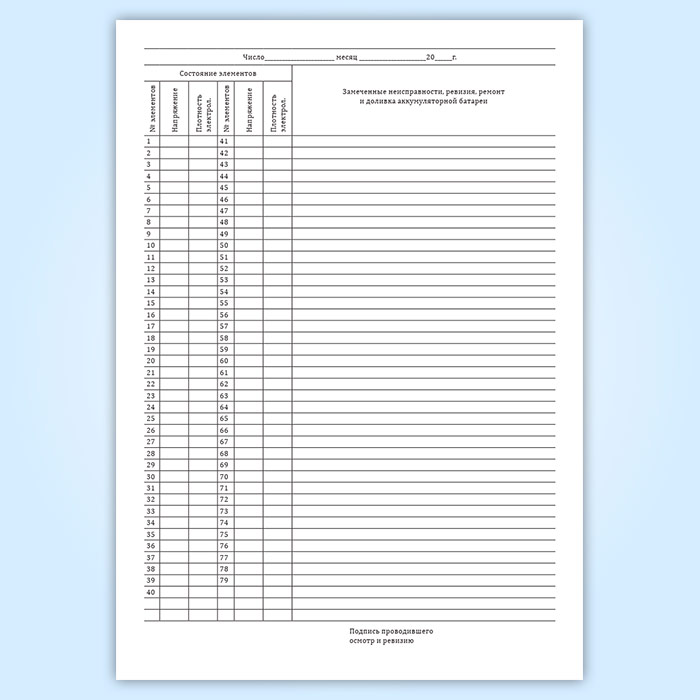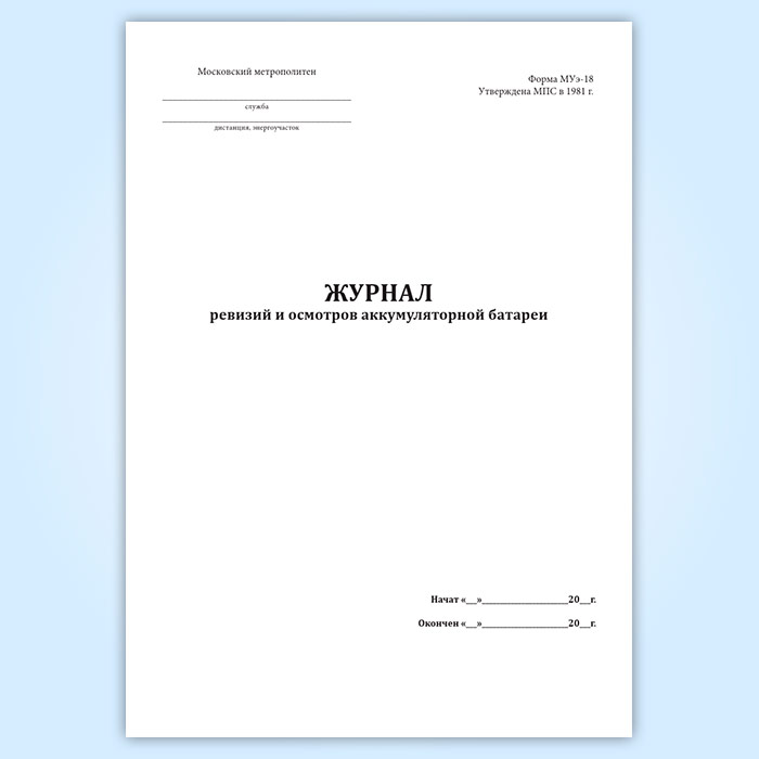 Журнал ревизий и осмотров аккумуляторной батареи (форма МУэ-18) в Тюмени купить
