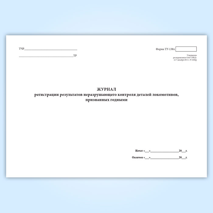 Журнал регистрации результатов неразрушающего контроля деталей локомотивов, признанных годными (форма ТУ-138л) в Тюмени купить