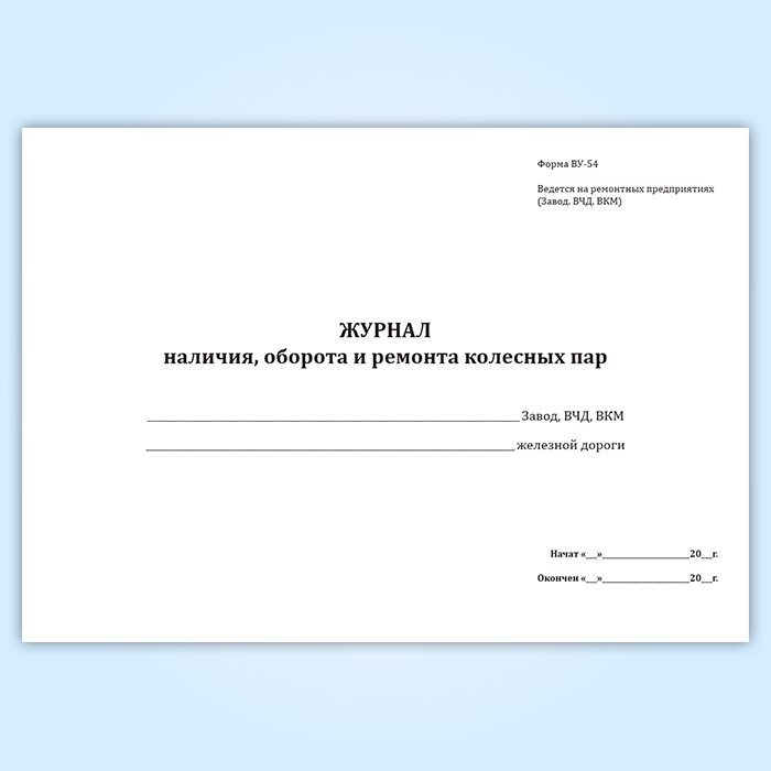 Журнал учета наличия, оборота и ремонта колесных пар (форма ВУ-54) в Тюмени купить
