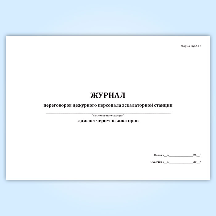 Журнал переговоров дежурного персонала эскалаторной станции с диспетчером эскалаторов (форма Муэс-17) в Тюмени купить