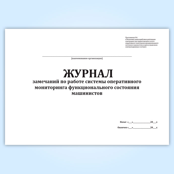 Журнал замечаний по работе системы оперативного мониторинга функционального состояния машинистов в Тюмени купить