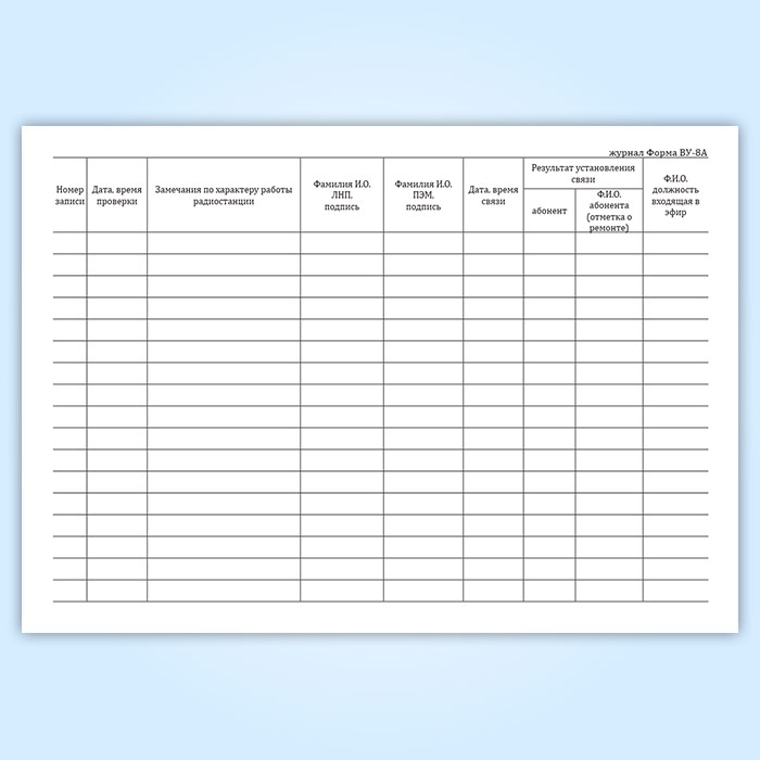Журнал работы поездной радиостанции (форма ВУ-8А) в Тюмени купить