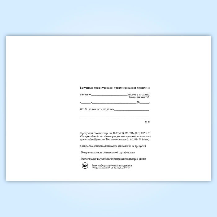 Вы получаете печатную продукцию прошнурованной и c местом для вашей печати в соответствии с действующими нормативными документами: