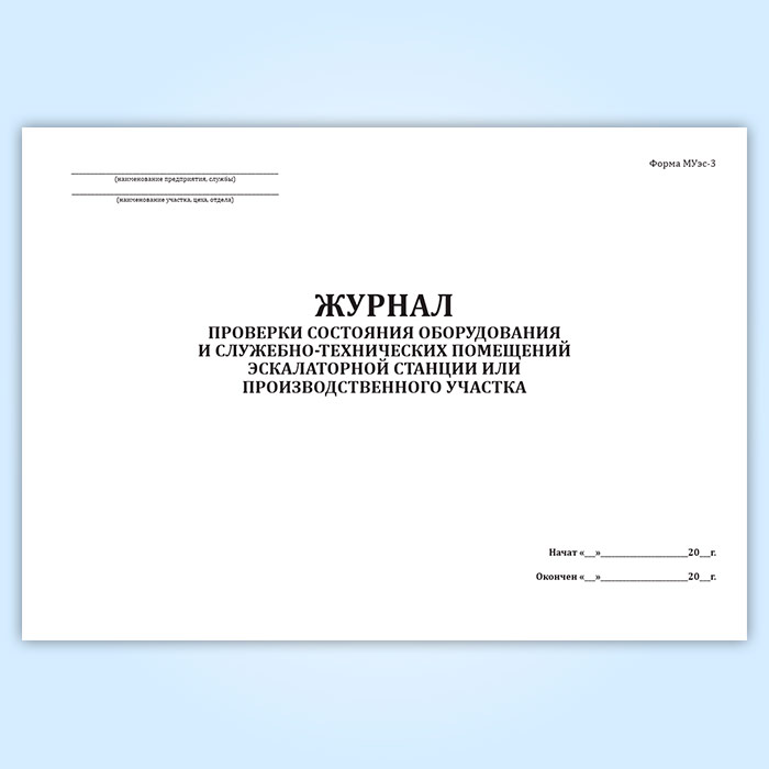 Журнал проверки состояния оборудования и служебно-технических помещений эскалаторной станции или производственного участка (форма МУэс-3) в Тюмени купить