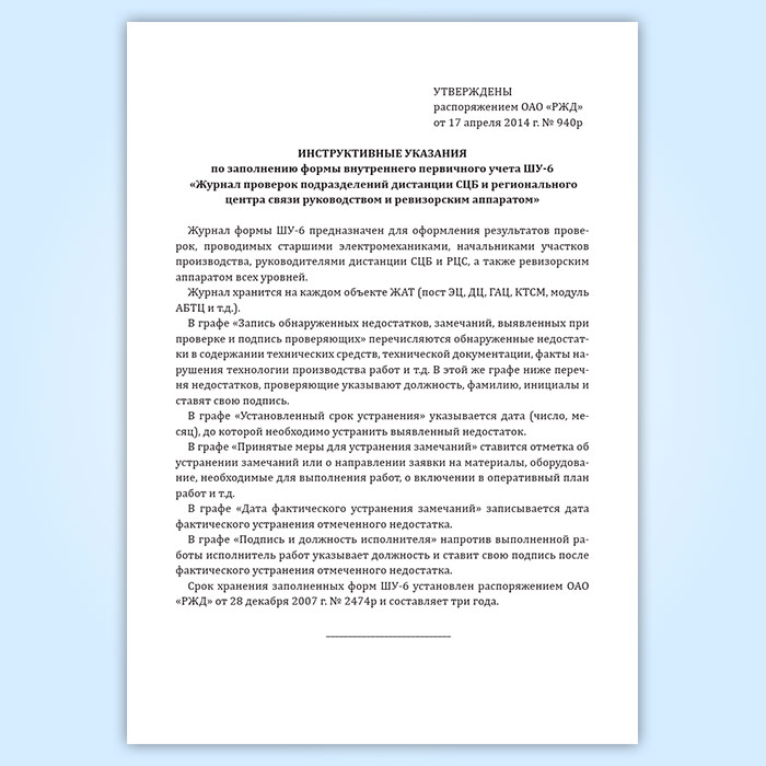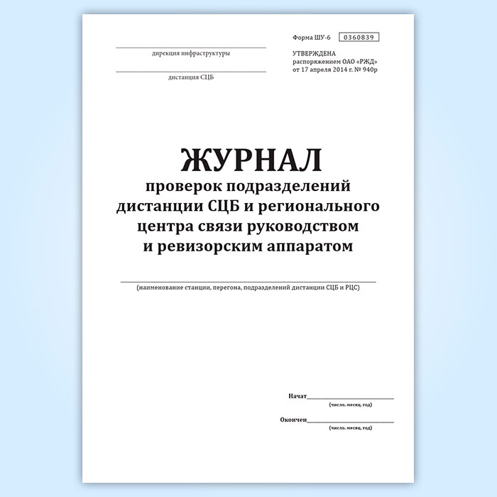 Журнал проверок подразделений дистанции СЦБ и регионального центра связи руководством и ревизорским аппаратом (форма ШУ-6) в Тюмени купить