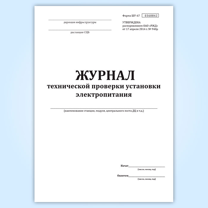 Журнал технической проверки установки электропитания (форма ШУ-67) в Тюмени купить